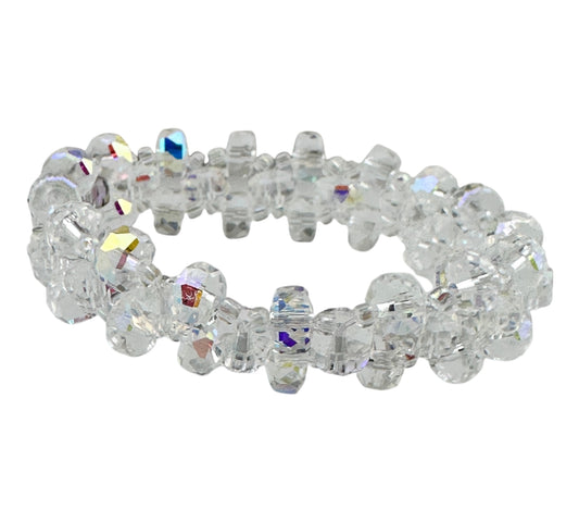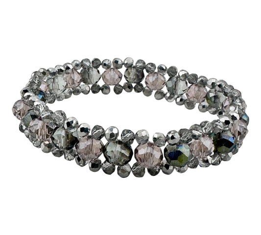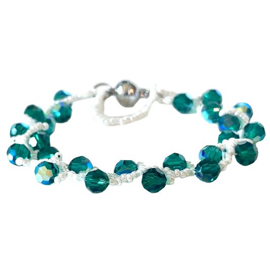 This Emerald Swarovski Crystal Vine Bracelet elegantly showcases white opaque luster Miyuki seed beads