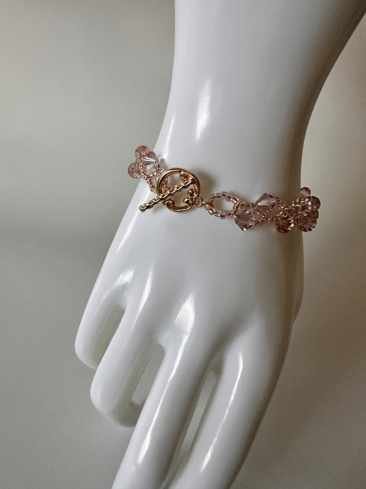 Vintage Rose Swarovski Bracelet – Pink Toho Beads & Gold Toggle