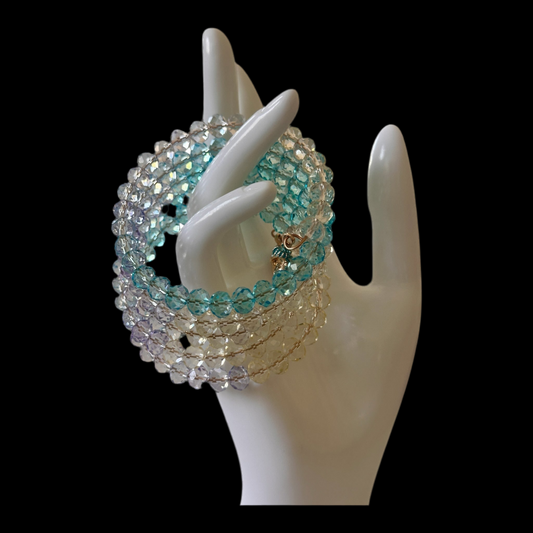 “Sea Goddess” Memory Wire Bracelet – 5-Ring Ombre Crystal Wrap with Shell Charm